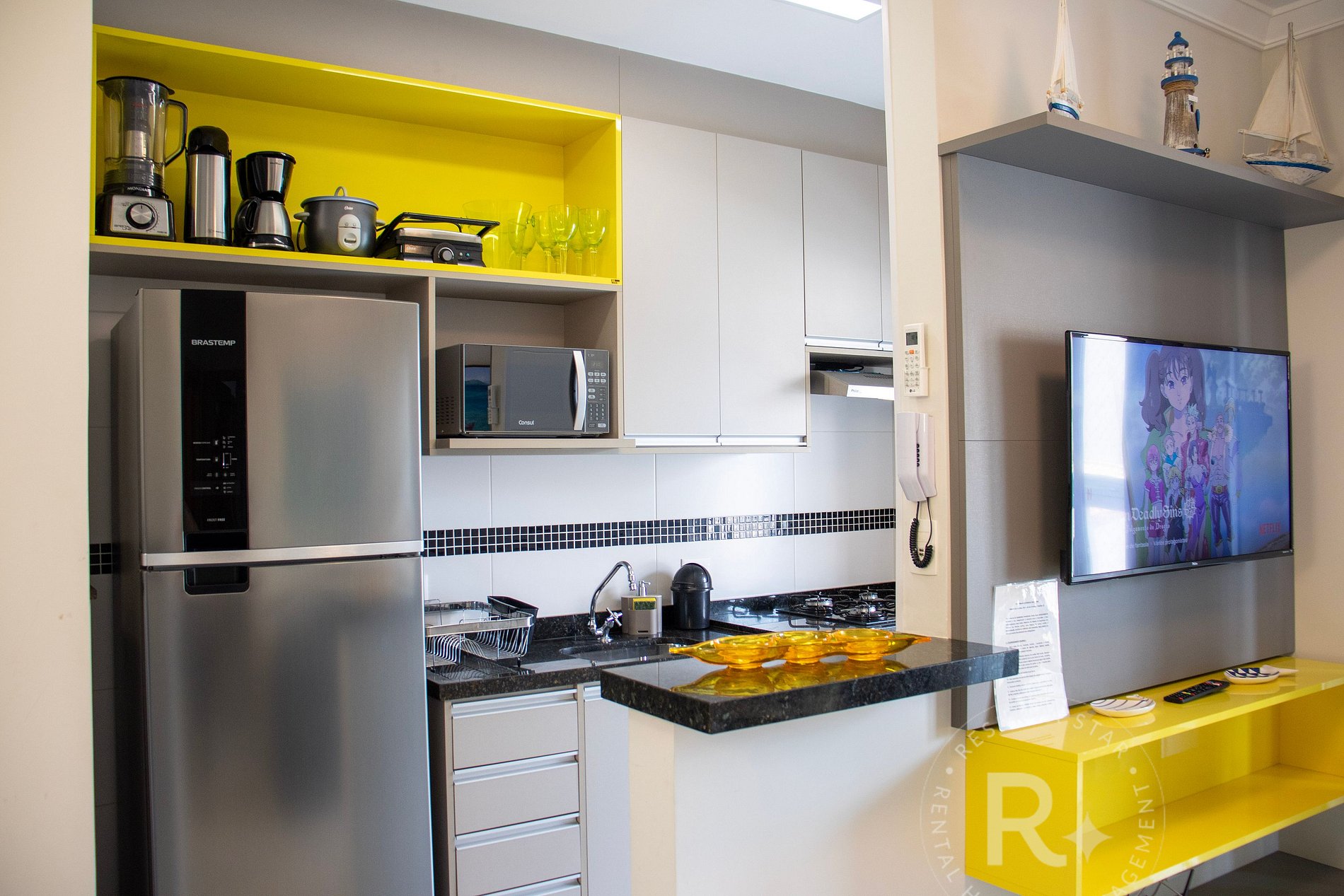 • Cozinha equipada com eletrodomésticos e utensílios básicos para preparo de refeições