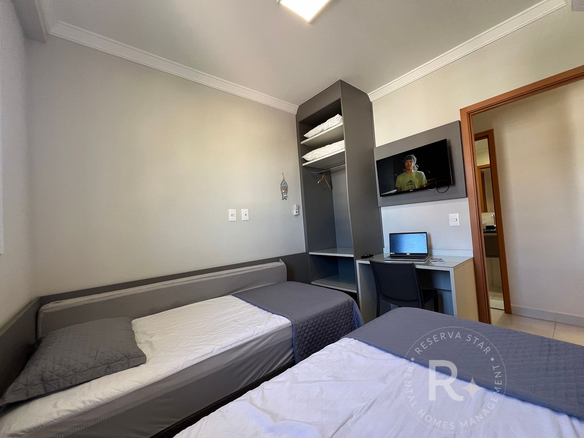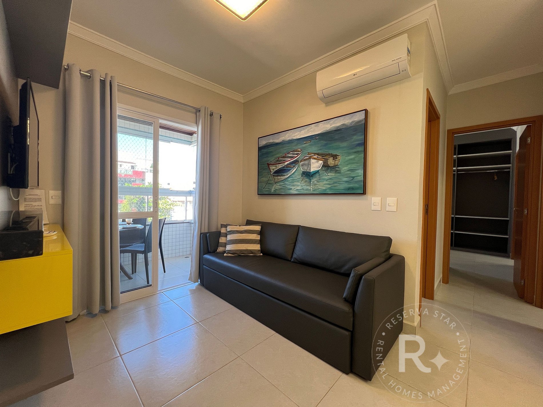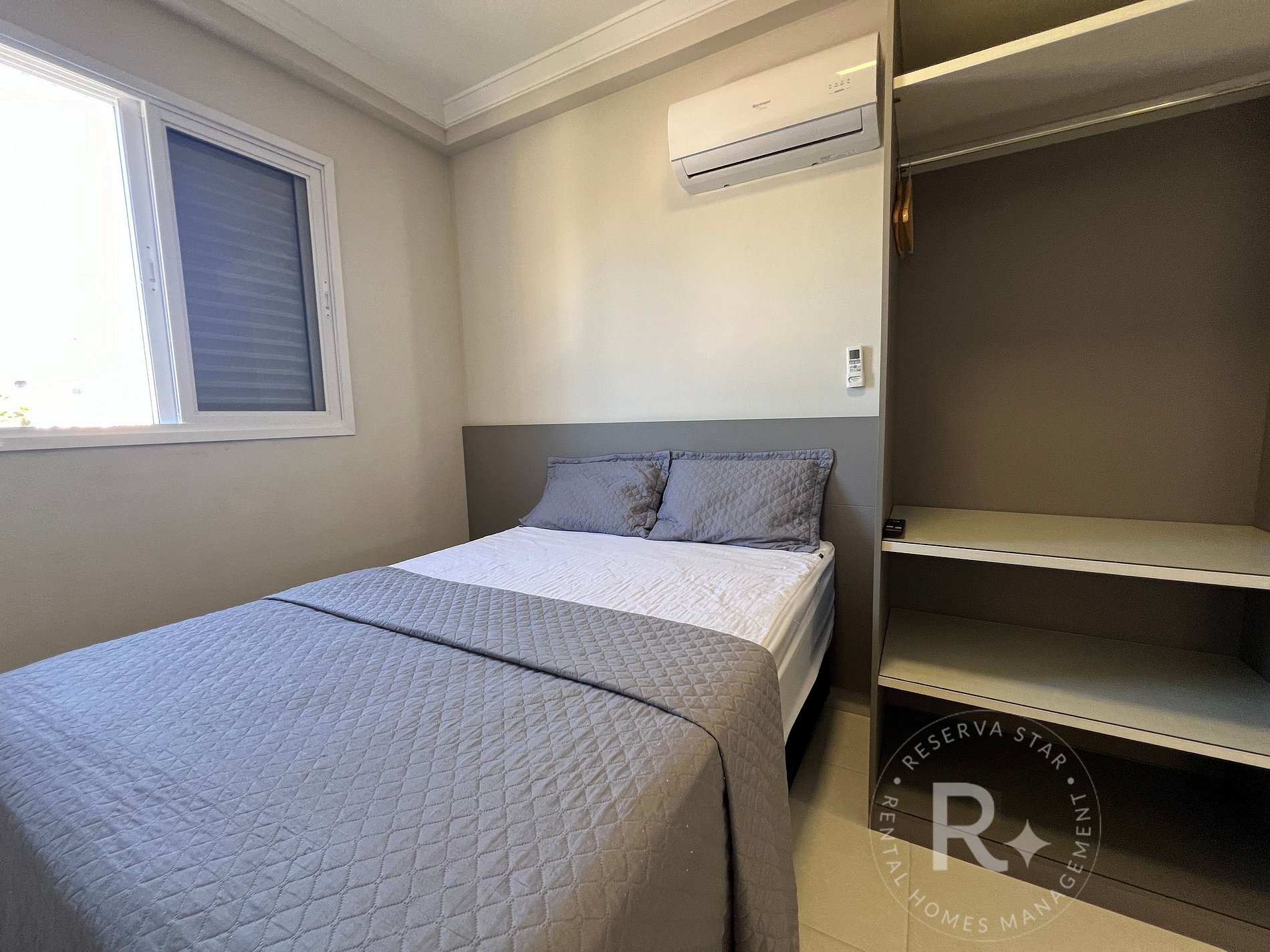• Ar-condicionado nos dois quartos e na sala.