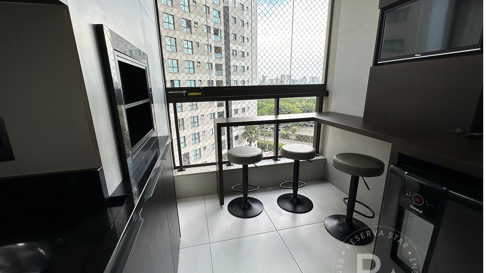 - Churrasqueira Privativa na sacada com TV sem canais com cabo HDMI para conexão com console, notebook, etc;